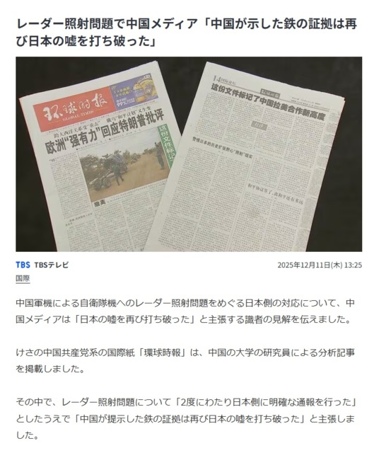 レーダー照射問題で中国メディア「中国が示した鉄の証拠は再び日本の嘘を打ち破った」