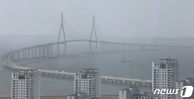 韓国仁川市の松島(ソンド)と永宗島(ヨンジョンド)を結ぶ仁川大橋で9月25日未明、車両を停車させたドライバ